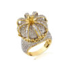 Fashioned from luxurious yellow gold, this ring features a striking round-cut diamond centerpiece, totaling an impressive 5 carats. Each diamond, meticulously selected for its brilliance and clarity, radiates regal allure, capturing the essence of refinement and prestige.