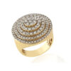 Fashioned from luxurious yellow gold, this ring features a striking round-cut diamond centerpiece, totaling an impressive 4 carats. Each diamond, meticulously selected for its brilliance and clarity, radiates regal allure, capturing the essence of refinement and prestige.