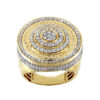 Fashioned from luxurious yellow gold, this ring features a striking round-cut diamond centerpiece, totaling an impressive 3.5 carats. Each diamond, meticulously selected for its brilliance and clarity, radiates regal allure, capturing the essence of refinement and prestige.
