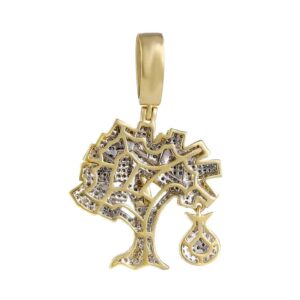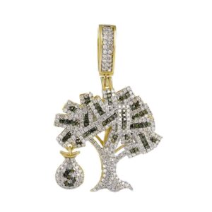 The Shape Of A Tree Of Money With Money Bag Dollar Sign On It 1.50 Carat Diamond Mens Pendant Necklace Solid Gold