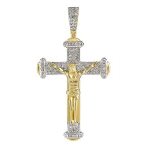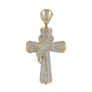 Harmony’s Herald Diamond Mens Cross Pendant Necklace Solid Gold 1.3 Ctw